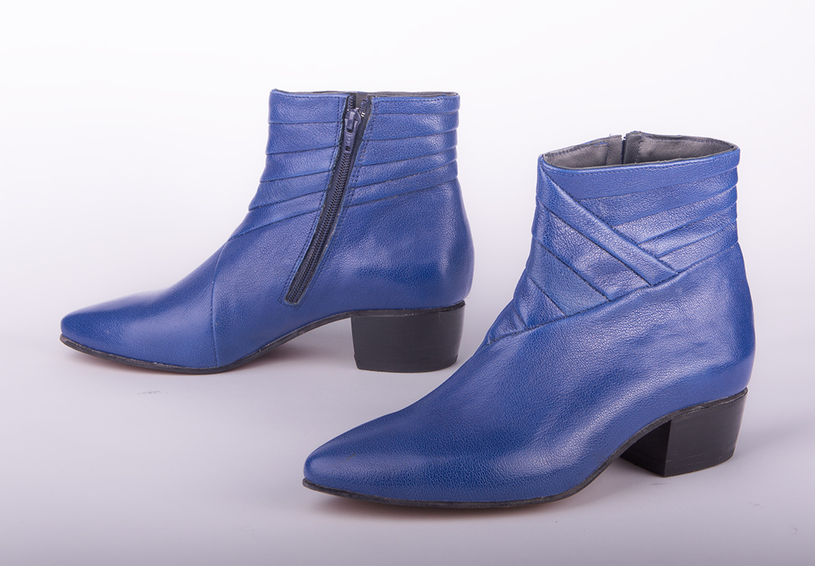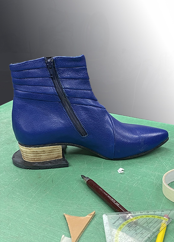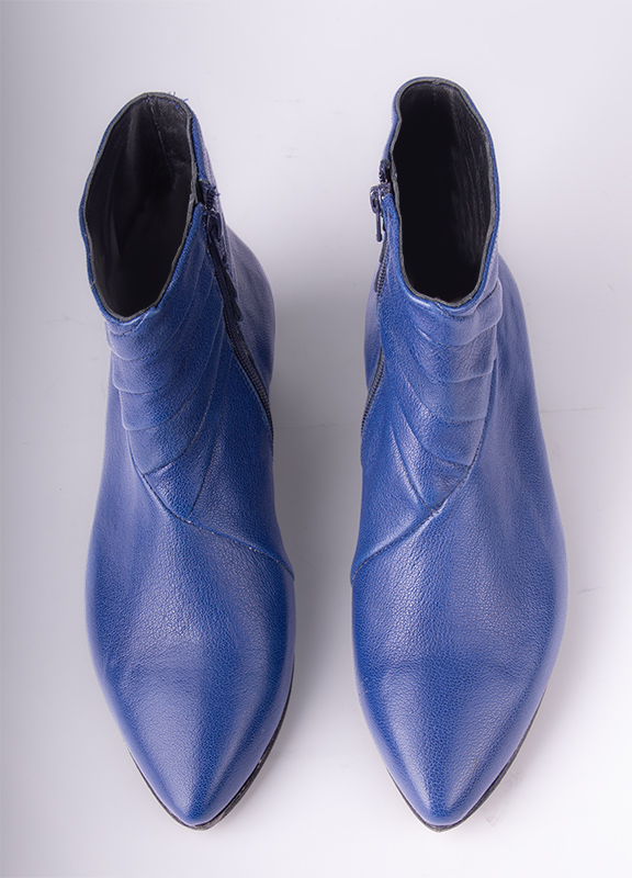 An ankle boot with a zip closure, fully bespoke and crafted from deep blue Prada leather. Both the shoe and the wooden last are custom-made in close consultation, resulting in an exceptional fit and outstanding comfort.