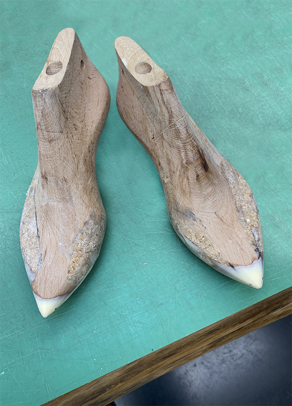 The heel is carefully built up from layers of leather, black stained and hand polished to a high sheen. Beautiful to look at, highly comfortable to wear, and easy to maintain.