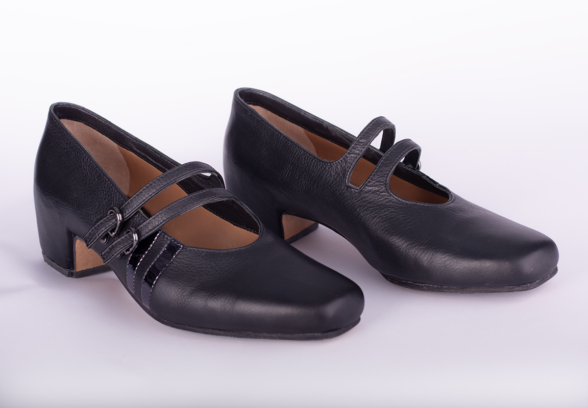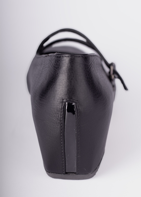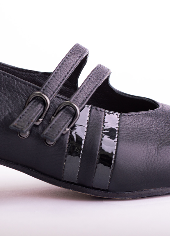 Een Mary Jane is een schoen met een bandje over de wreef – in dit geval zelfs twee. In seriematige productie worden deze bandjes uit efficiëntieoverwegingen altijd apart toegevoegd. Maar bij deze handgemaakte, tailor made schoenen ontstond het idee om het bandje juist een integraal onderdeel van de schoen zelf te laten zijn.